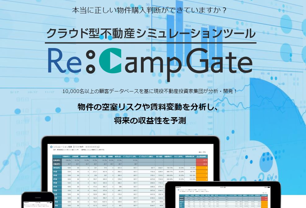 Re:Camp Gateは1万名以上の顧客データべースを元に分析、開発されたクラウド型の不動産シミュレーションツールです。